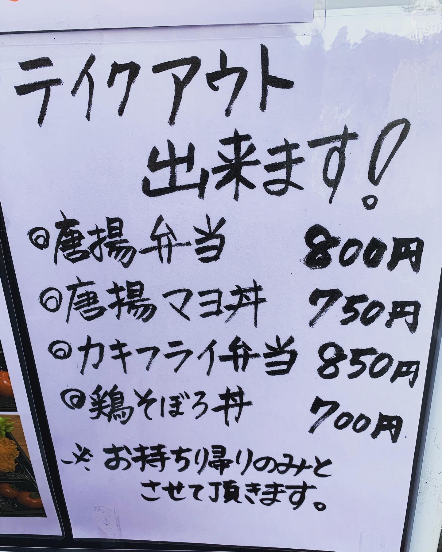 テイクアウトのみとなりますが、