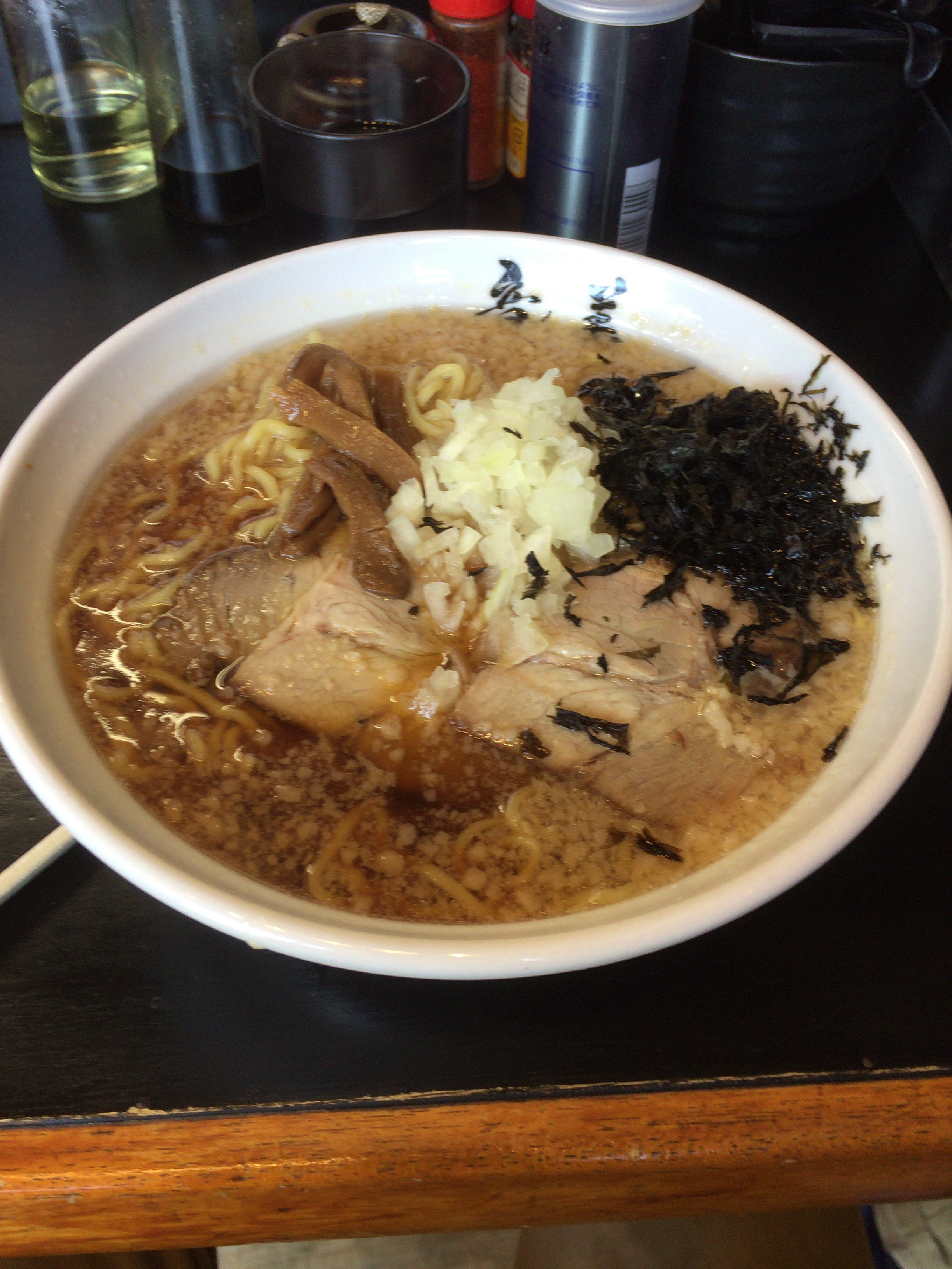生姜の効いた、背脂醤油ラーメン!!!うまいです!背脂効いてますが生姜でサッパリ!癖になります。ワタシハマリマシタ!!!週3で食べたいですは