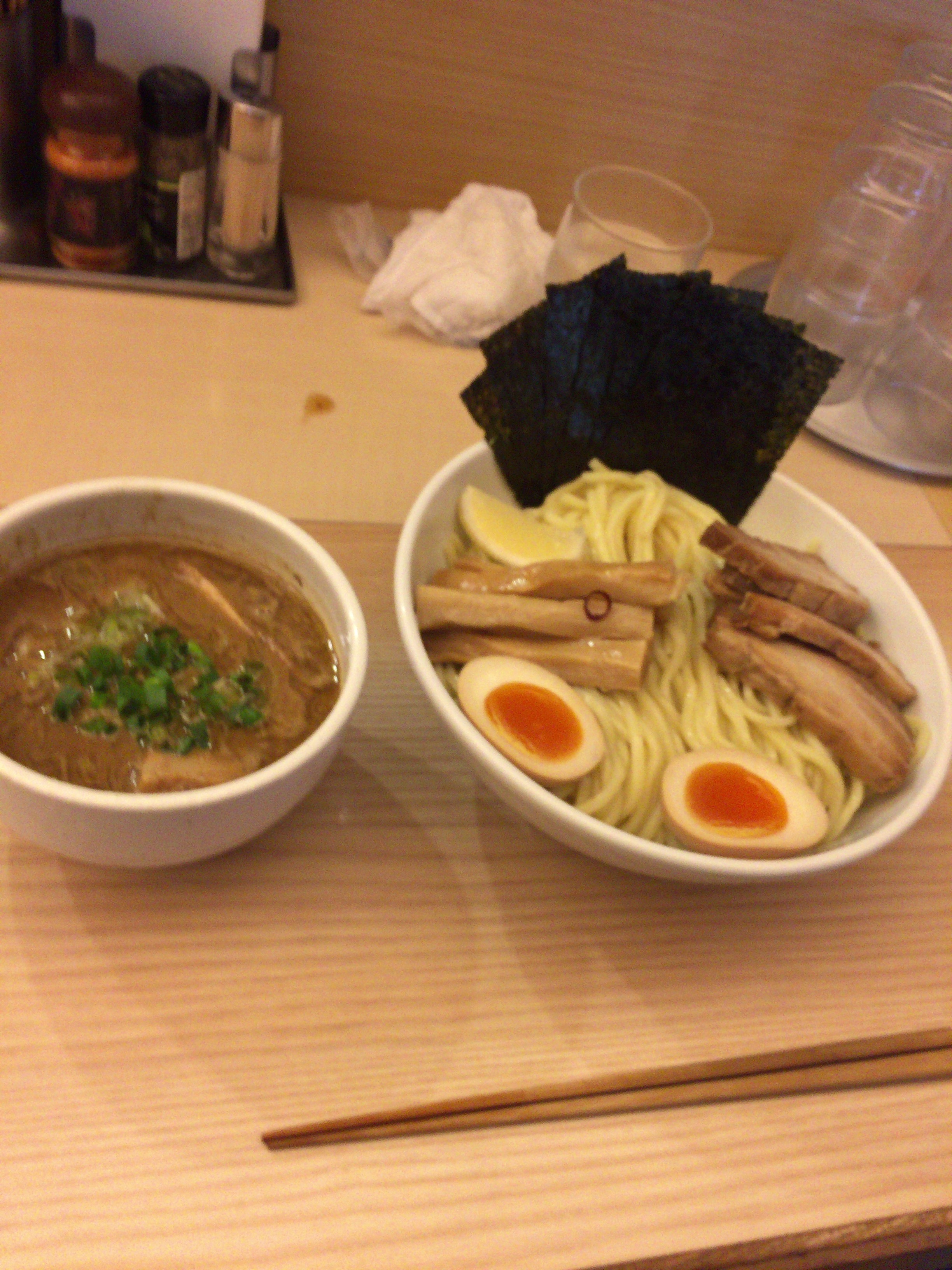 見た目から期待大!ナイスですねー。魚介ドロッとのやや煮干し臭!これは、、、美味い!マジ美味い!ナイスですねー。スープもよくあるドロッとではなく、スムージーのような感じ!おシャンティ、ナイスですねー。麺は自家製太麺でタピオカのようにモチモチ!ナイスですねー!僕好み、味好み!!!ただ、、、量がスゴイィー。せっかくの美味なのに多いぃー!飽きるー!