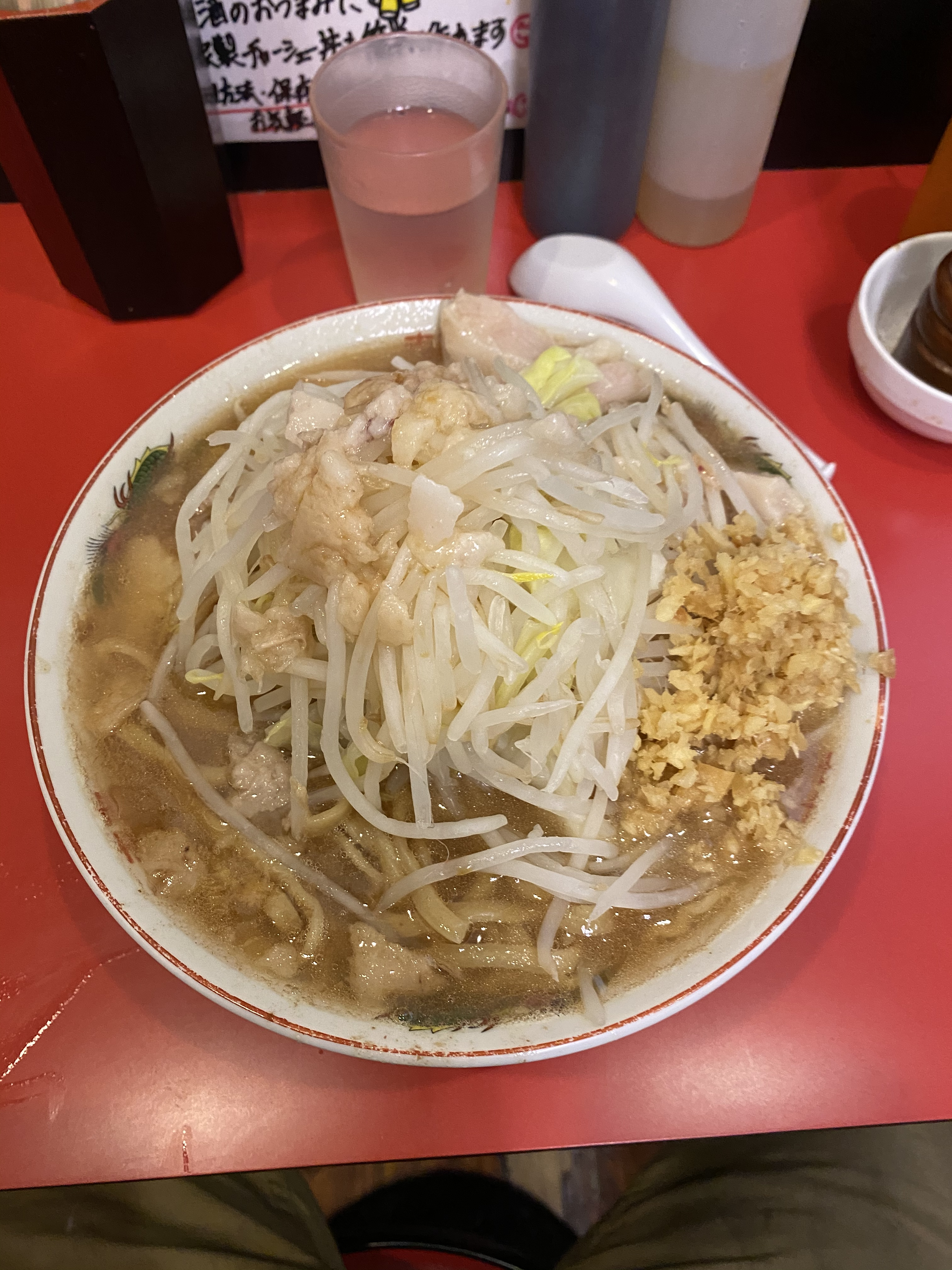 鷹の眼!悪そうな名前ですねー!私共大好物二郎系。ニーハオシェイシェイ。タイミングよく空いてる?それとも、、、、、よかった!タイミングのほうでした!味はすいません!普通。悪ぶってるだけの根性なしでした。深みとゆーか、味が定まってないような、んー普通!まーなんでも普通が1番?普通が難しい?普通のが好きなら行けばええやん。普通ってええやん。しかし打率変らないですね。 次に期待してみます。皆様、インフル、花粉、コロナ、気をつけましょ!花粉もやだなー
