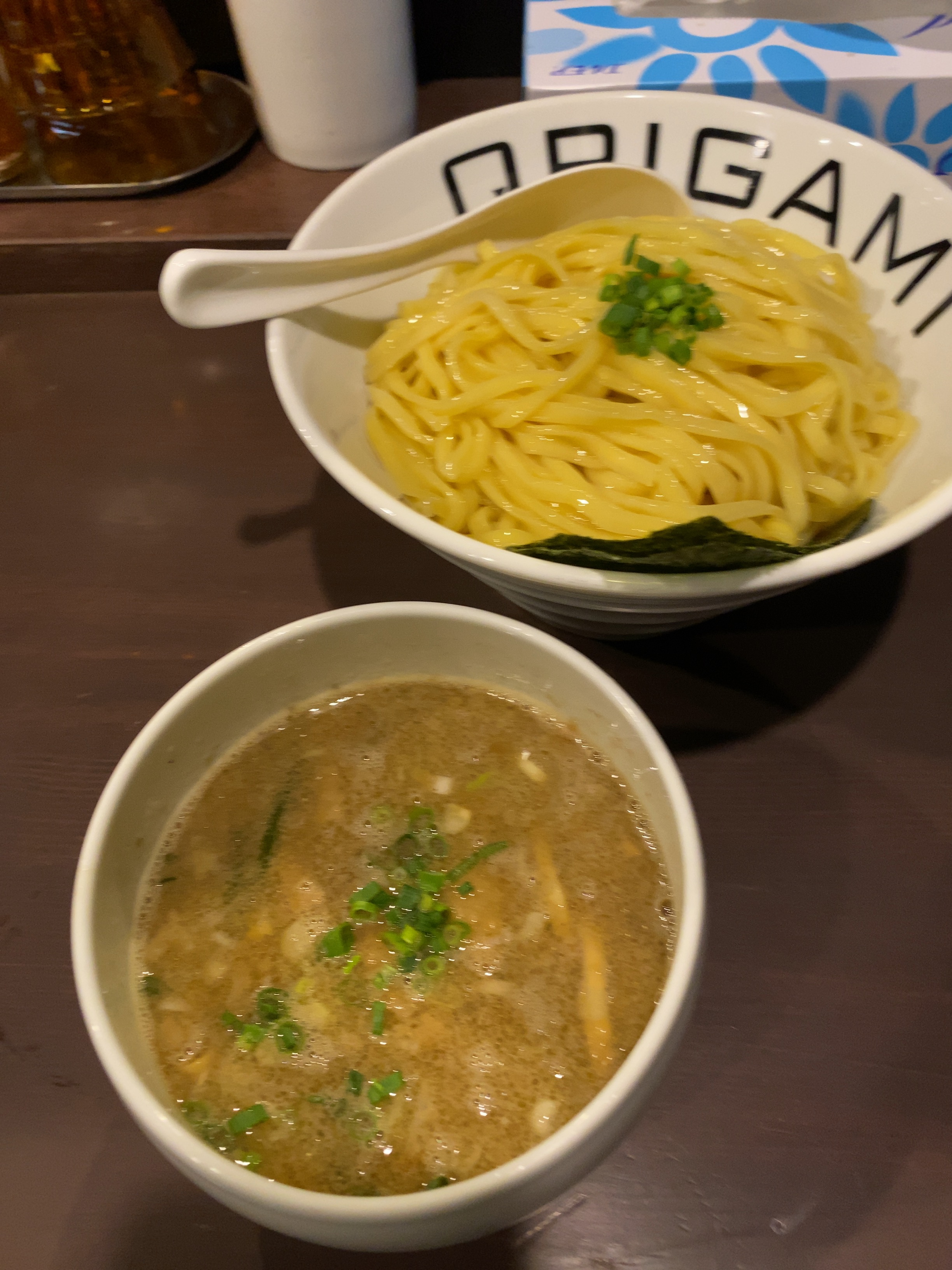つけ麺!これも煮干しですが、僕はラーメンより好きですね!オリガミはつけ麺オススメ!とにかく最初から最後まで旨いなーと言ってしまいます!皆様是非!