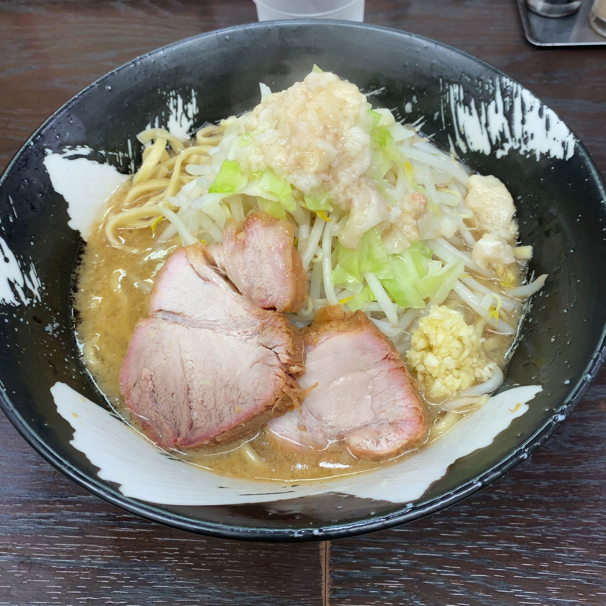 都内に現調がてらラーメン巡りとゆーか、僕の大好きな池袋の二郎系ラーメンを社長に食べてほしくて行ったところ、臨時休業!半分シャッター開いてるのに、、、運悪し。なのでHEYグルナビで、周辺の二郎系へ!豚さんマークのラーメンいつき!14時前だったとしても、客2名。あやしい。とりあえず新店二郎系なので中盛チョイス。しばらくすると客がぞろぞろ!安心感UPの僕。できましたラーメン!